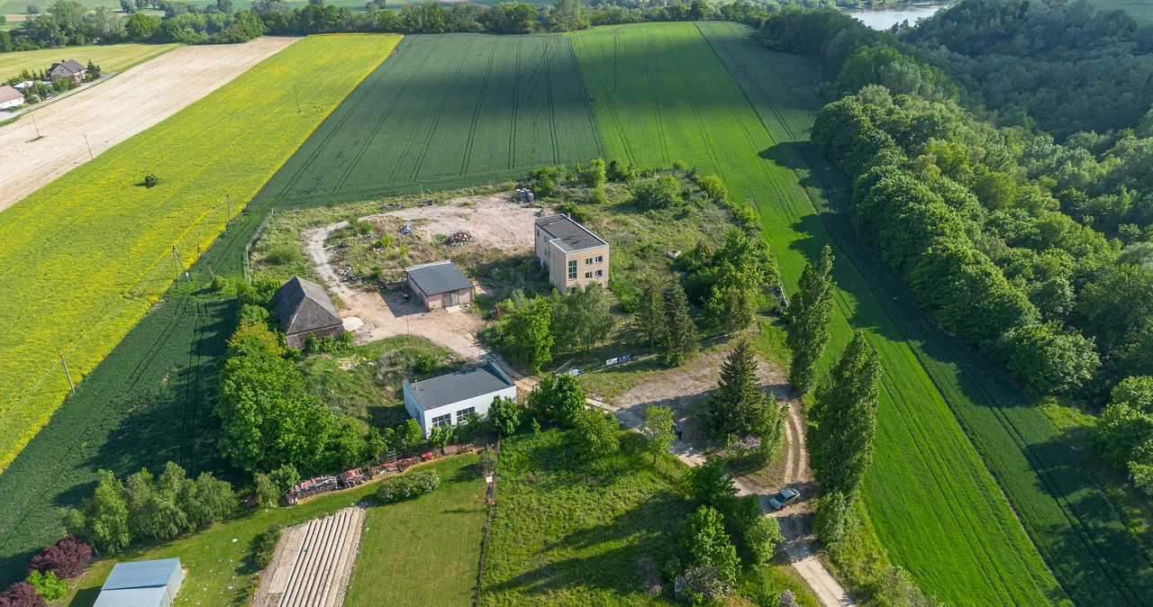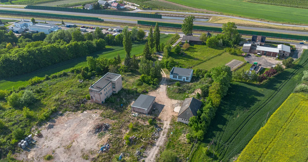 Teren przemysłowy z zabudowaniami przy trasie S5 w miejscowości Wiąg. Zlokalizowany 3 kilometry od Świecia, a 5 km od węzła autostradowego Nowe Marzy