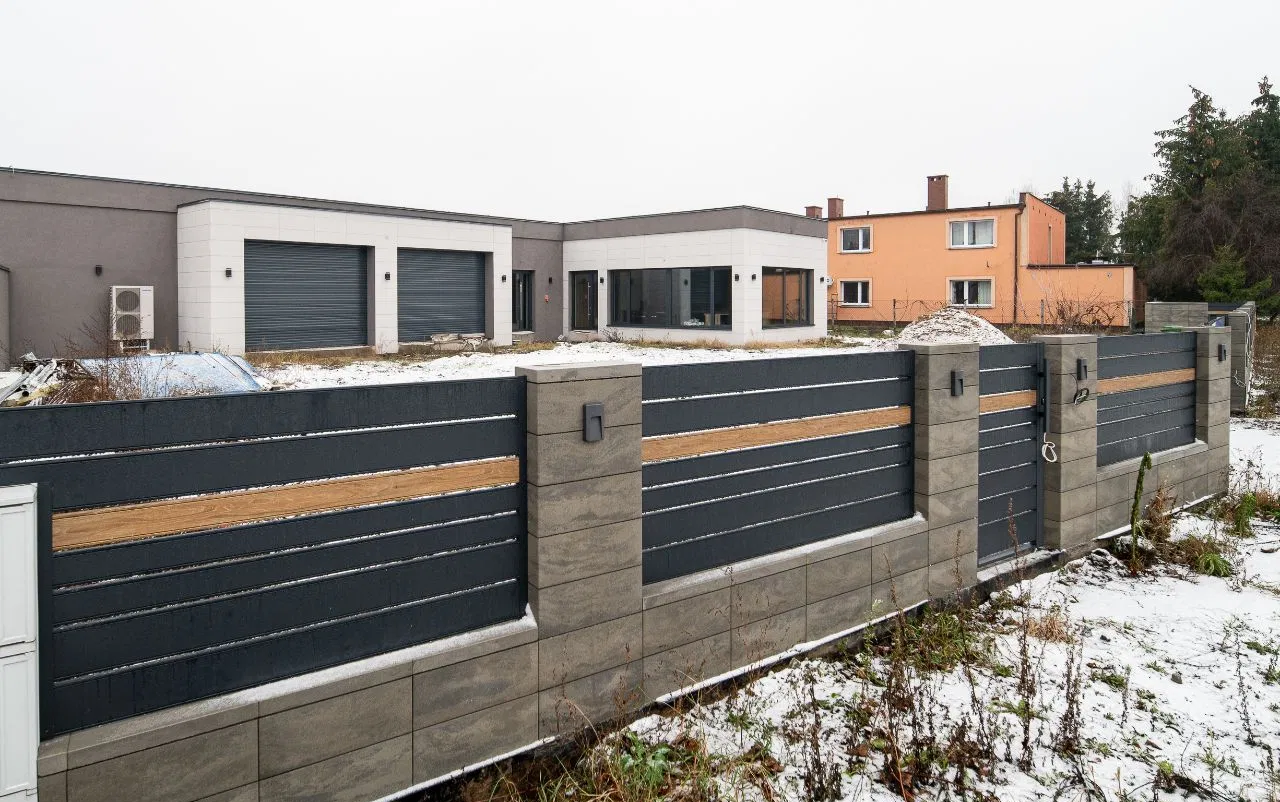 - Teren utwardzony: ułatwia manewrowanie pojazdami oraz dostęp do garaży.